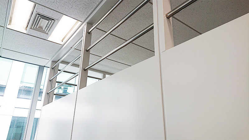 (東京都 港区 オフィス) セキュリティルーム新規施工に伴う 侵入防止のためのバーを上部に配置したパーティション ITOKIのFCNパーティションを使用した工事を工期1日で行いました。 パーテーション工事についてお問い合わせフォームよりお気軽にお問い合わせください。 パーティション見...
