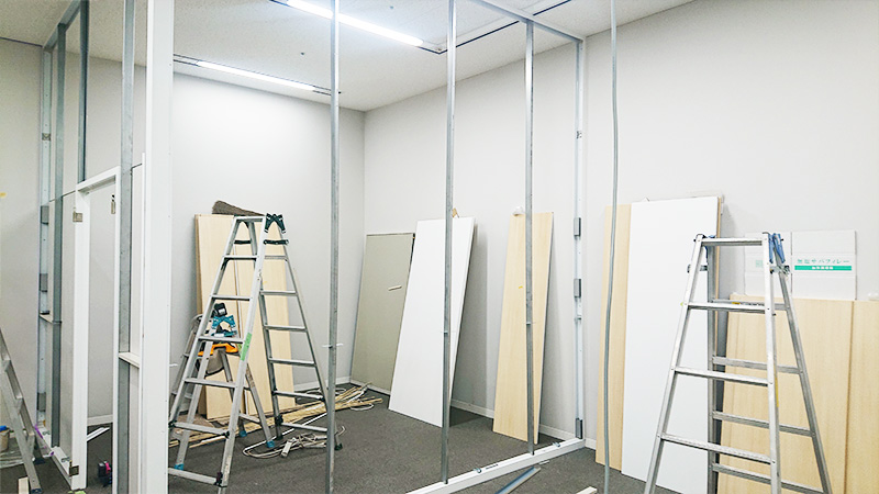 (東京都 板橋区 ) ITOKIのフレキシウォールFCNパーティション(20㎡)を1日で施工しました。 照明の下でも施工可能なように補強を入れ...